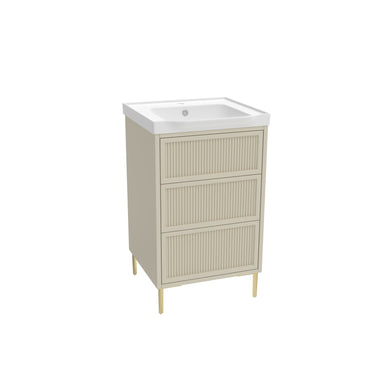 Bota Fluted 500mm 3 Drawer Bathroom Vanity Cabinet, Stone Basin - Beige Stone