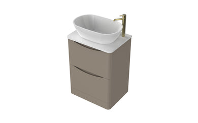 Aragon 600mm Bathroom Floor Cabinet with Countertop. 2 Drawer Soft Close - Matt Stone