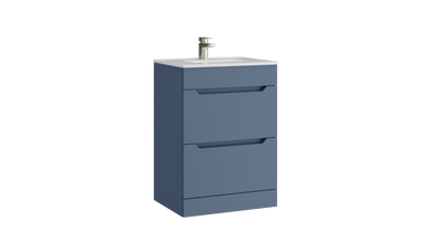 Geo - Handless 600mm 2 Draw Floor Vanity Unit with Ceramic Basin - Something Blue
