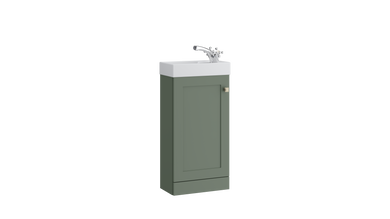 Freshwater - Traditional Shaker 400mm 1 Door Floor Cloakroom Unit with Ceramic Basin - Something Green