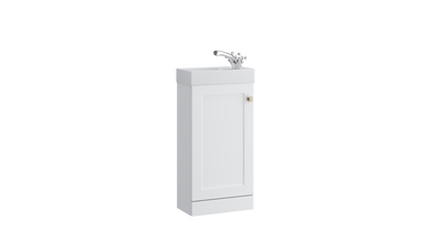 Freshwater - Traditional Shaker 400mm 1 Door Floor Cloakroom Unit with Ceramic Basin - Something White