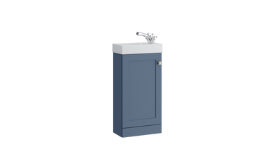 Freshwater - Traditional Shaker 400mm 1 Door Floor Cloakroom Unit with Ceramic Basin - Something Blue