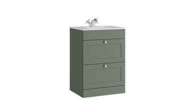 Freshwater - Traditional Shaker 600mm 2 Draw Floor Vanity Unit with Ceramic Basin - Something Green