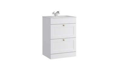 Freshwater - Traditional Shaker 600mm 2 Draw Floor Vanity Unit with Ceramic Basin - Something White